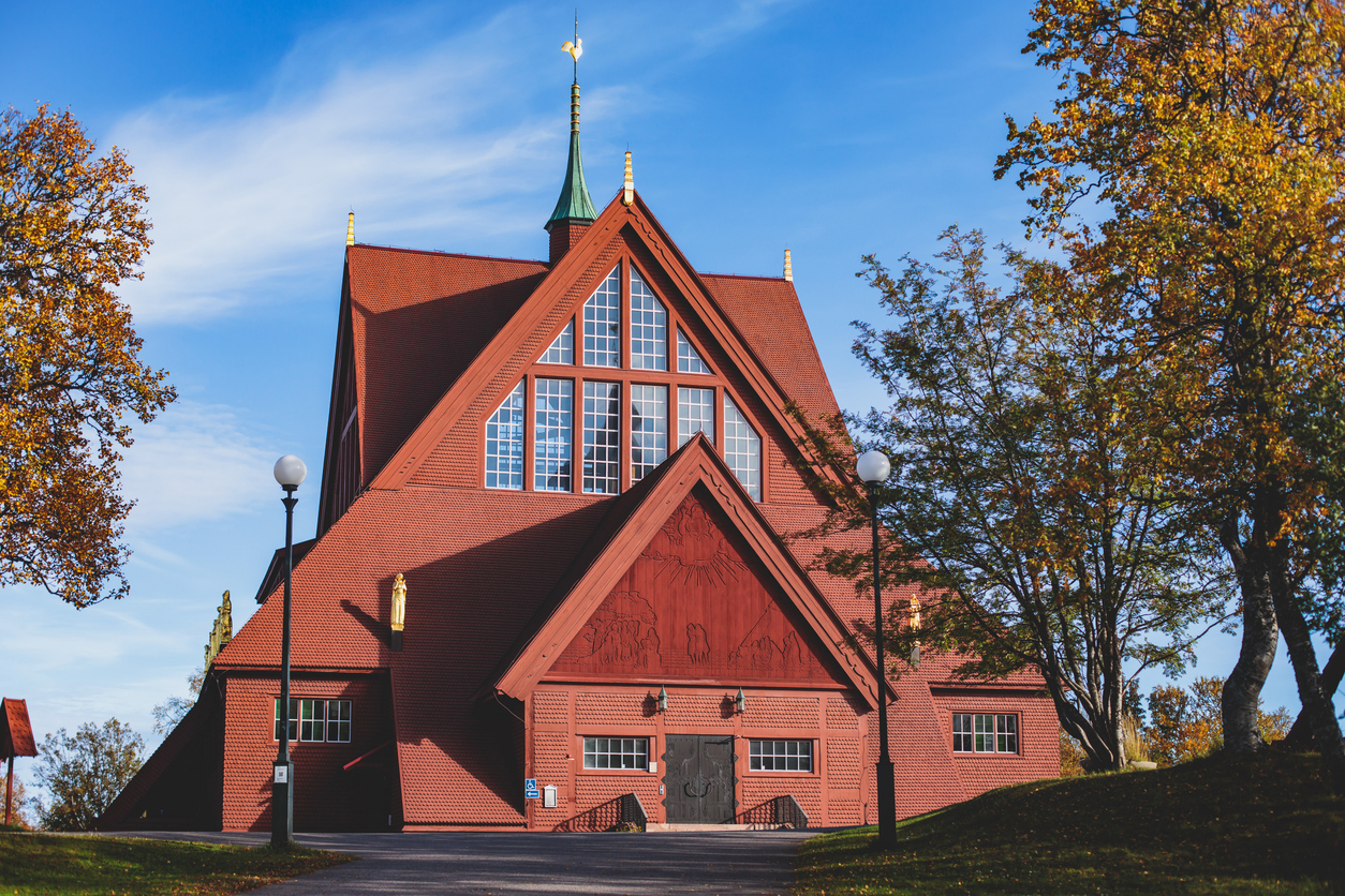 Summer sunny view of Kiruna streets, the northernmost town in Sweden, province of Lapland, Norrbotten County